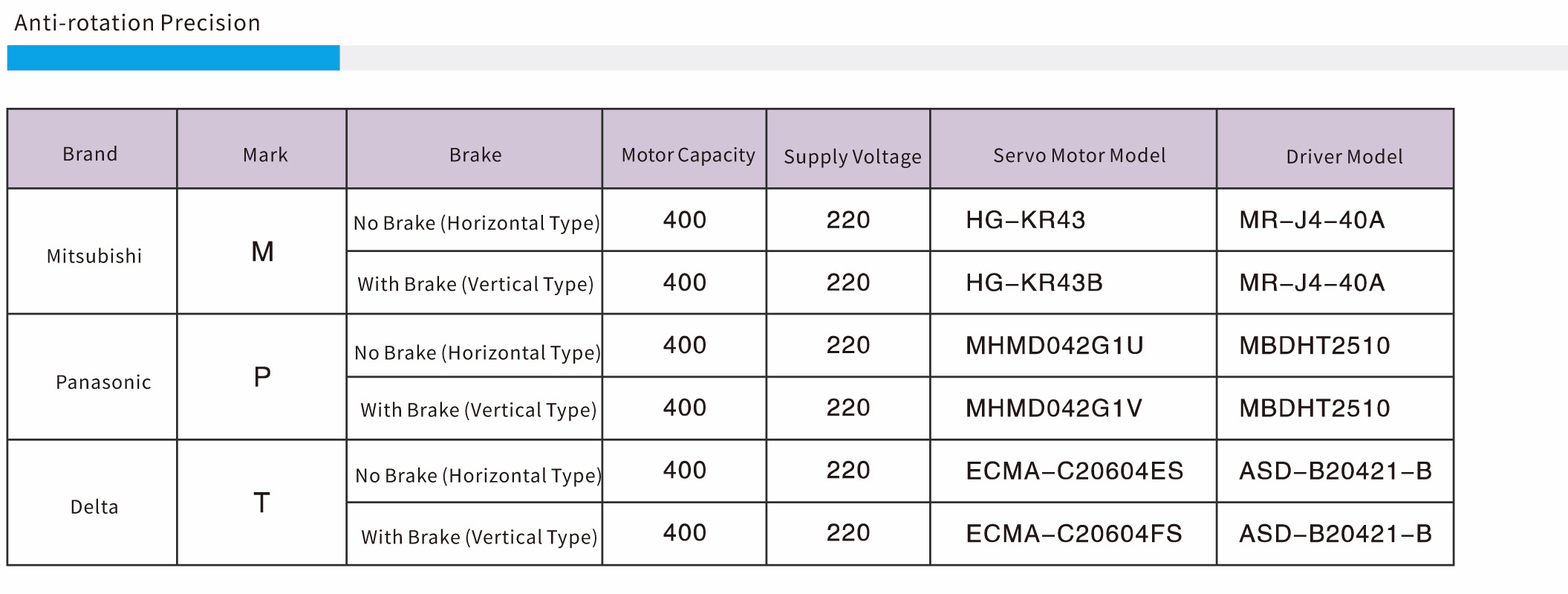 • Load torque table
