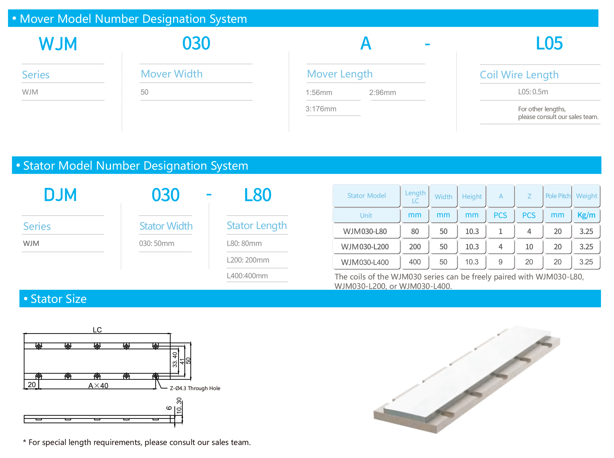 Stator length:L80mm/L200mm/L400mm