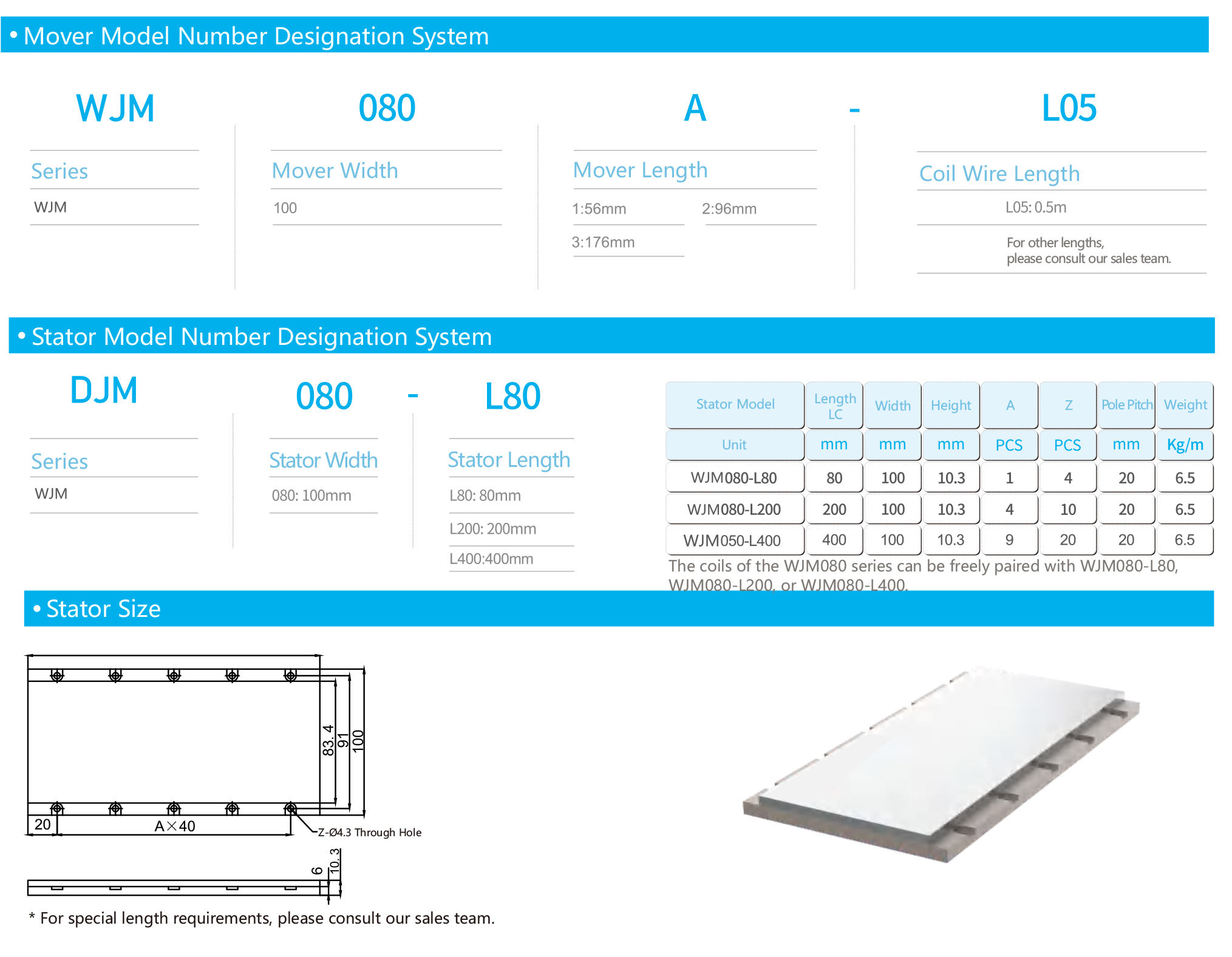 Stator length:L80mm/L200mm/L400mm