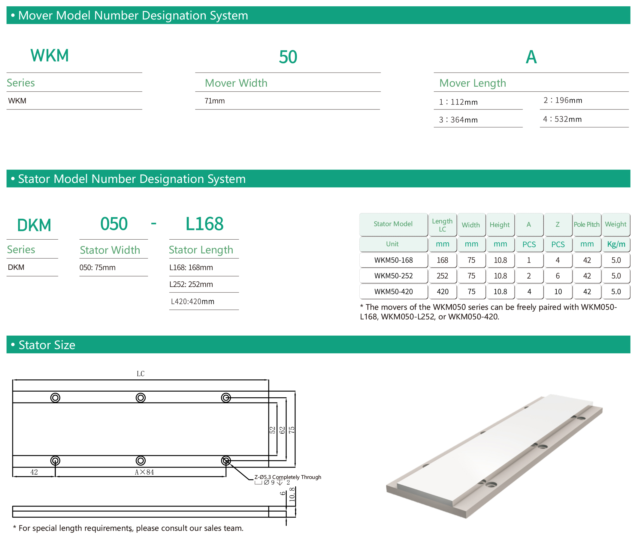Stator length:168mm/252mm/420mm