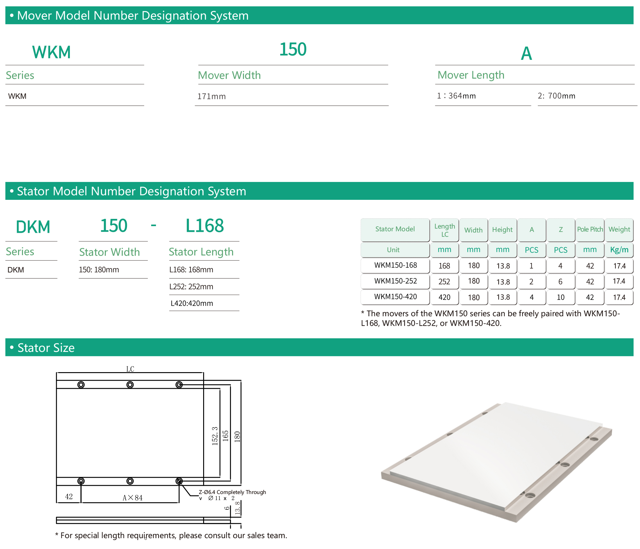 Stator length:168mm/252mm/420mm