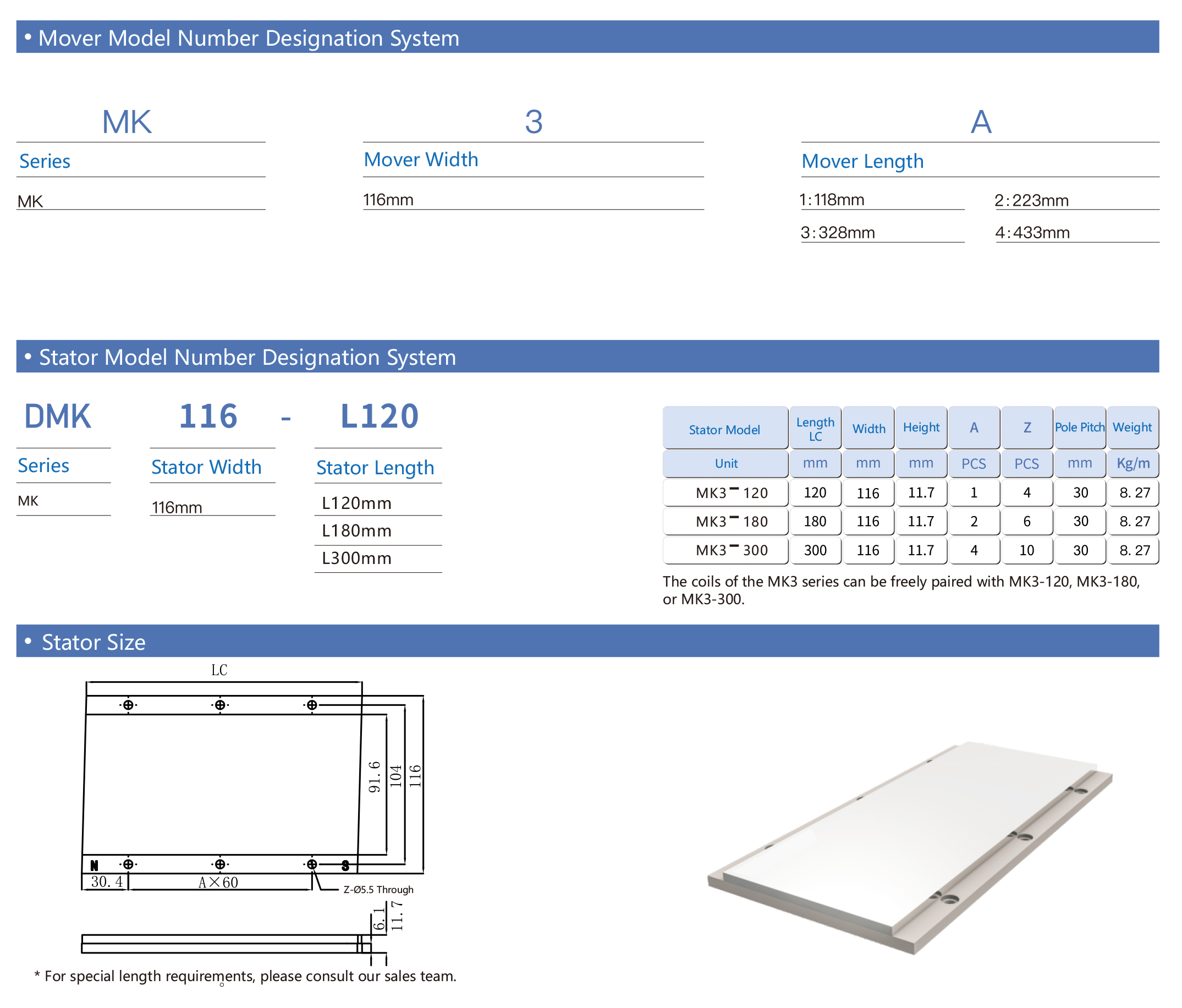 Stator length: L120mm/L180mm/L300mm