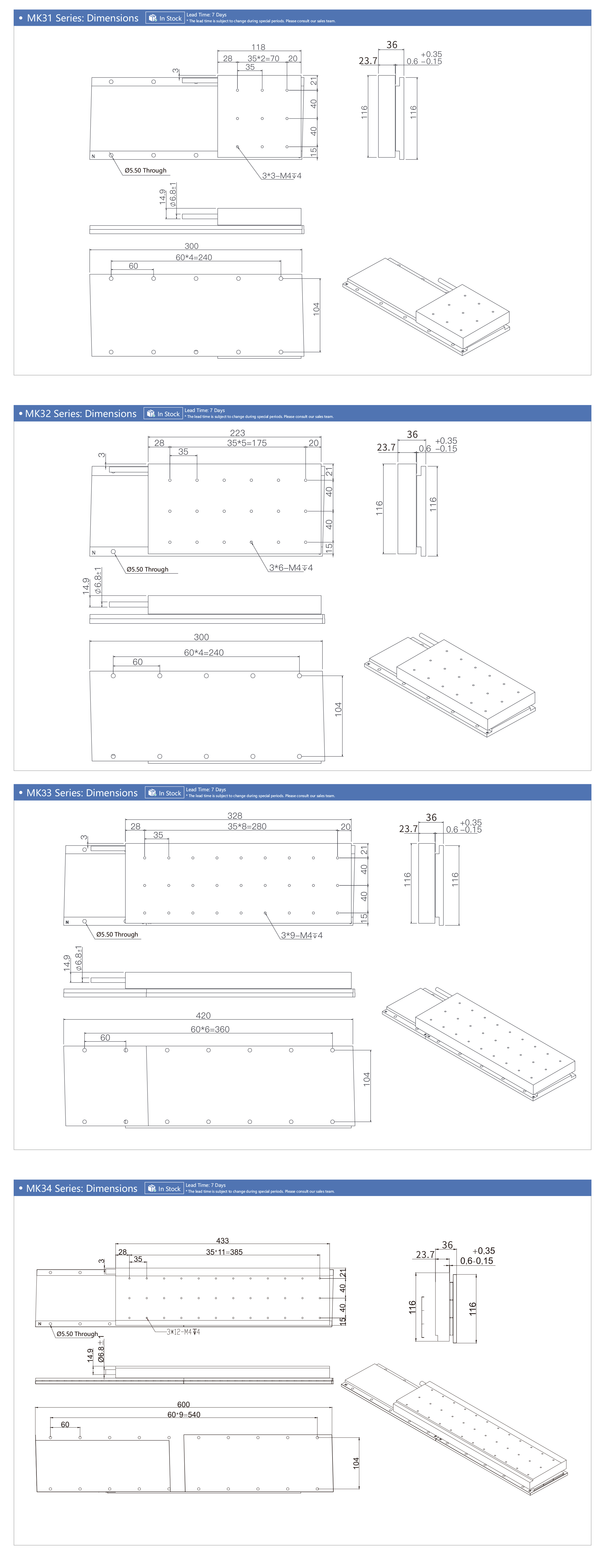 Length of mover: MK31:118mm/MK32:223mm/MK33:328mm/MK34:433mm